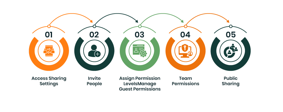 - Access Sharing Settings: Open ‘Sharing & Permissions’ from a Folder, List, or task. For Dashboards, find it in the upper-right corner